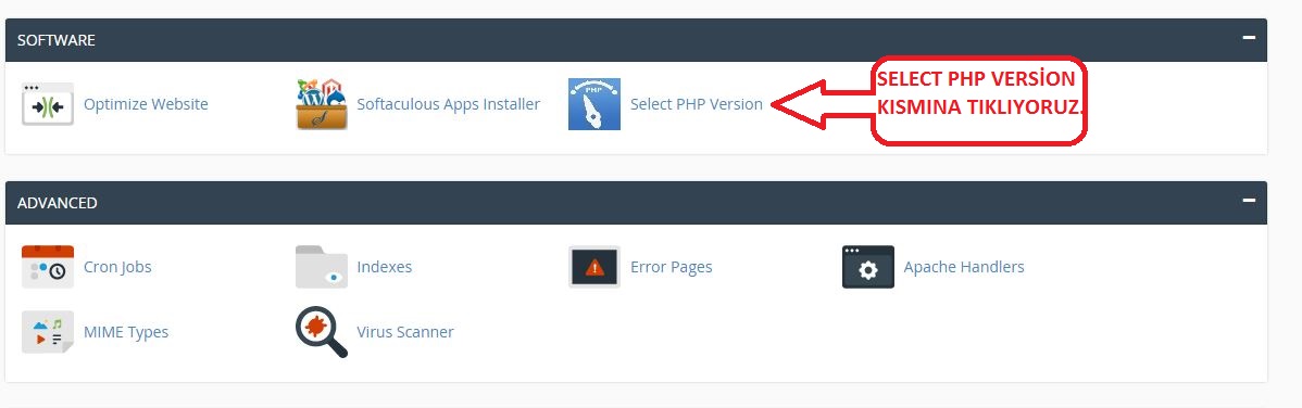 Açılan sayfada “Select PHP version” kısmına tıklıyoruz.