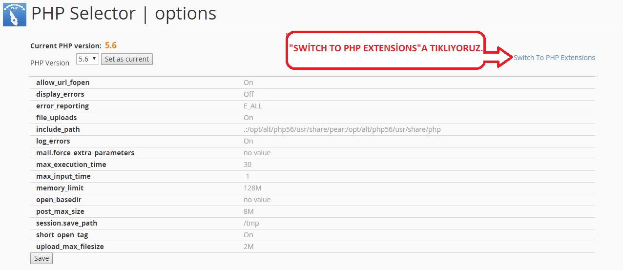 Açılan Pencerede “switch to PHP extensions”a Tıklıyoruz.