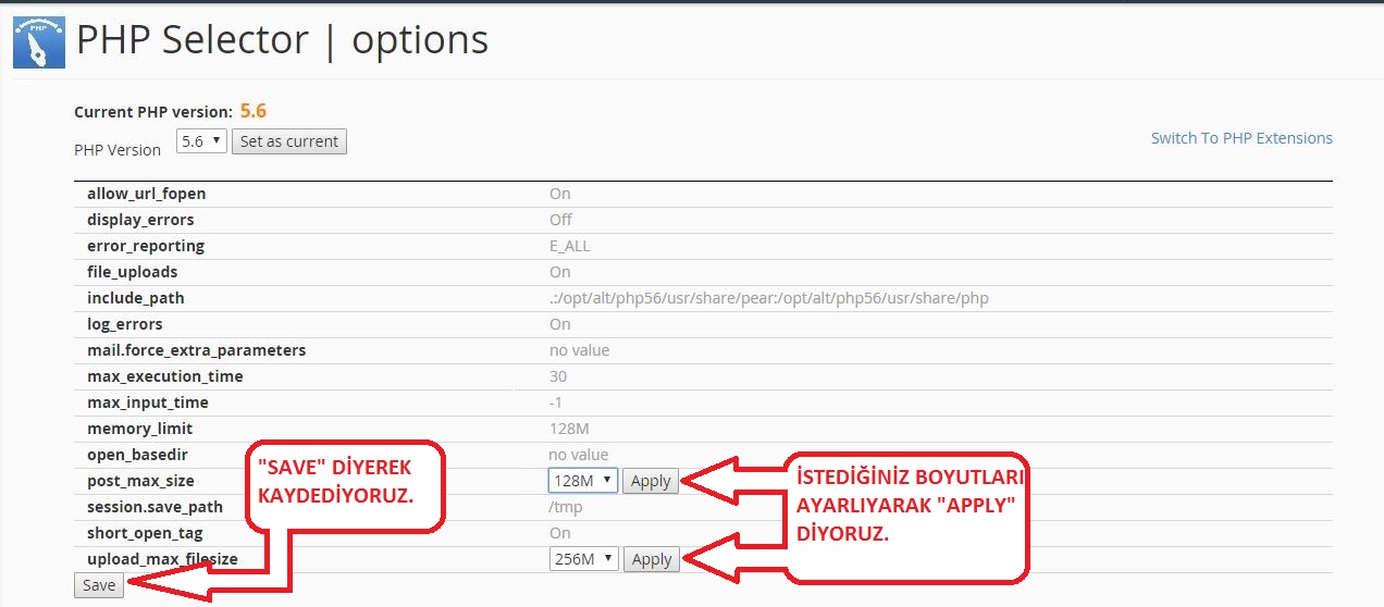 cPANEL Max Upload Size ve Post Size Değerlerini Yükseltme