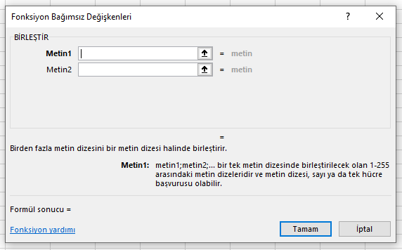 • BİRLEŞTİR Office 2019 ile birlikte ARALIKBİRLEŞTİR olarak değiştirildi. Ancak yine de BİRLEŞTİR fonksiyonu çalışmaktadır.
