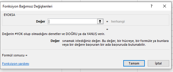 • EYOKSA Fonksiyonu : Hata değeri yalnızca #YOK olduğunda yakalar.
