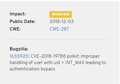 Açıklığın, PolicyKit 0.115 sürümüyle yüklü gelen Red Hat, Debian, Ubuntu ve CentOS dağıtımlarında etkili olduğu belirtiliyor. Zafiyet CVE-2018-19788 kodu ile kaydedildi.
