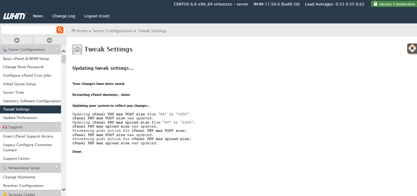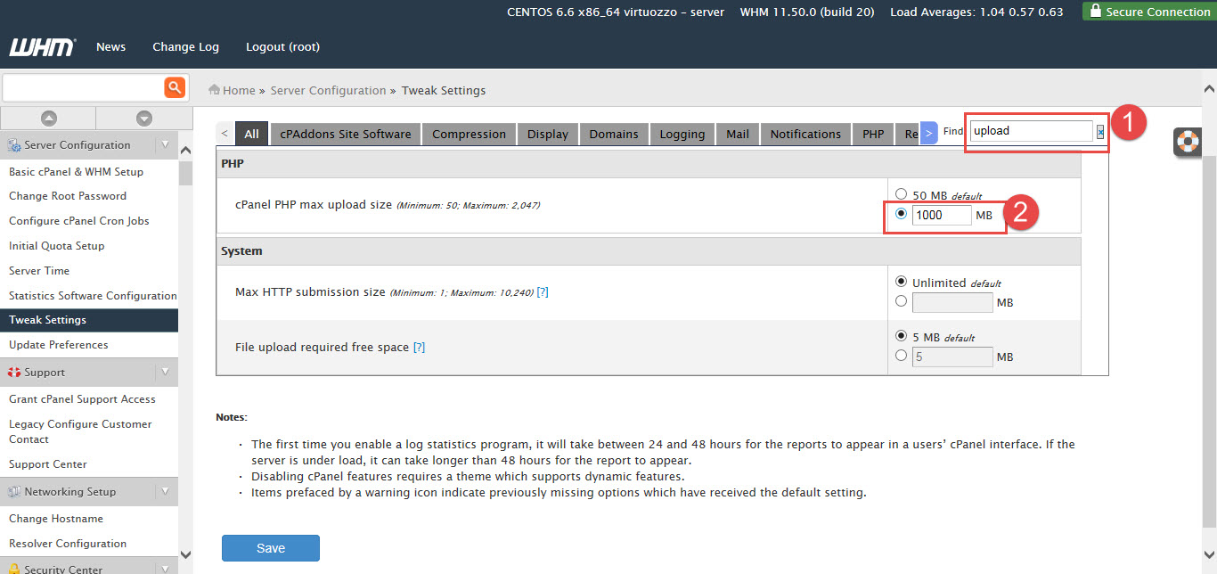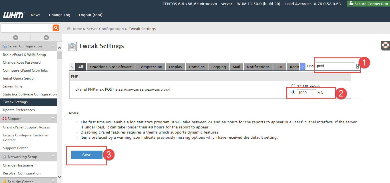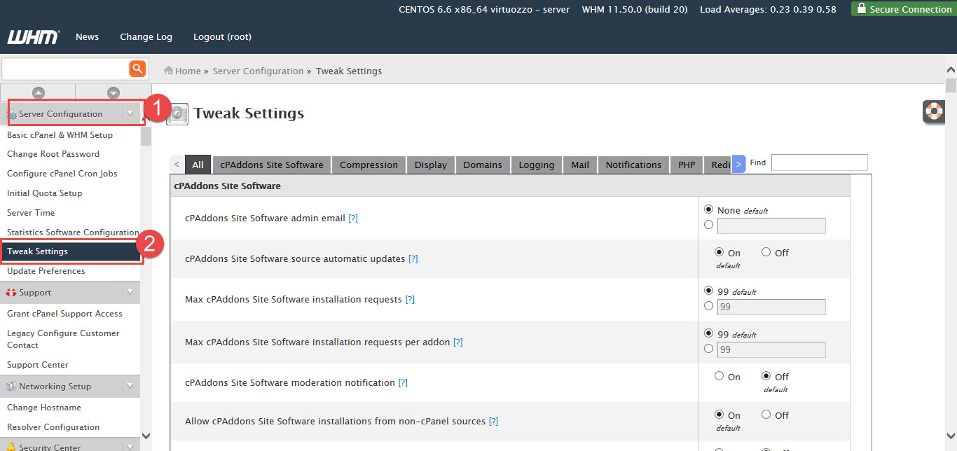 1-WHM Paneline Login Olun, Server Configration -> Tweak Setting’e Gelin;