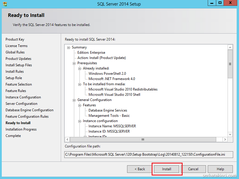 Ready to Install adımında özet gösterilir. Bir eksik olmadığını düşünüyorsanız kurulumu başlatmak için hazırsınız. Install butonuyla ateşleyin.