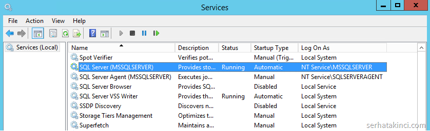 SQL Server servislerinin durumunu gözlemleyin. SQL Server Setup sırasında belirlediğiniz yapılandırmada olmaları gerekiyor.