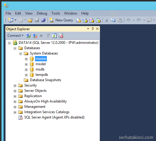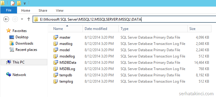 SQL Server 2014 tarafından oluşturulan varsayılan veritabanlarını ve bulundukları dizini kontrol edin.