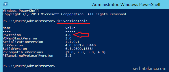 - Windows Server 2012 R2 üzerinde PowerShell 4.0 yüklü olarak gelir. Herhangi bir yükleme yapmanıza gerek yoktur.