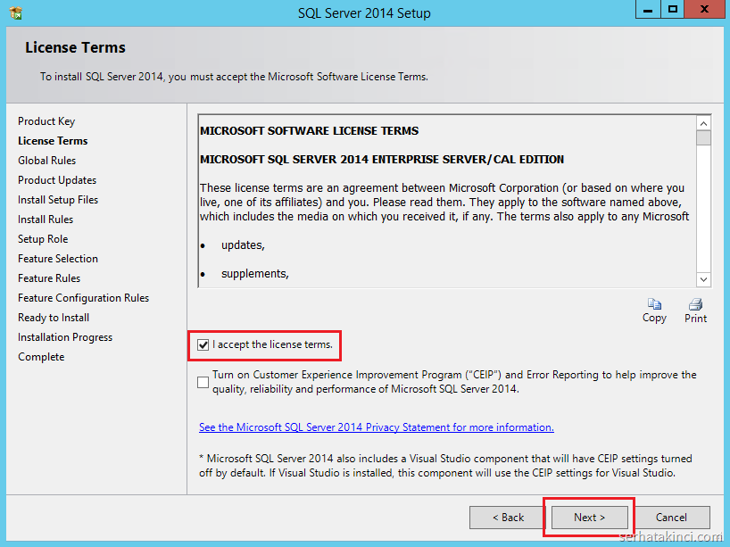 SQL Server 2014 kurulumu yukarıdaki gibi ilerler.