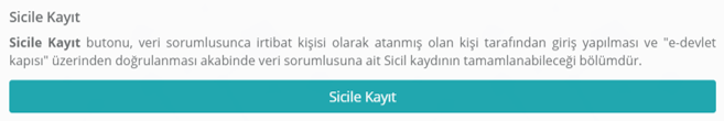 Kurum başvuruyu değerlendirdikten sonra, belirtilen mail adresi üzerinden güvenli bir yöntemle kullanıcı adı ve parola bildirmektedir. Daha sonra sisteme giriş yapılarak bir irtibat kişisi atanır. İrtibat kişisi sisteme E-Devlet kanalıyla giriş yaparak kayıt işleminin en önemli aşaması olan VERBİS’te istenen bilgileri kaydetme işlemi yapılmalıdır.