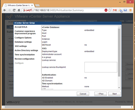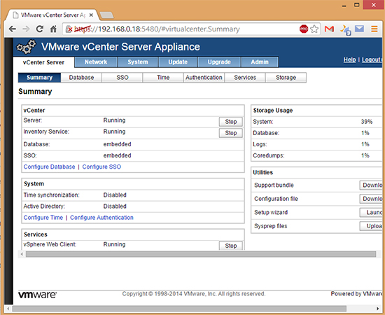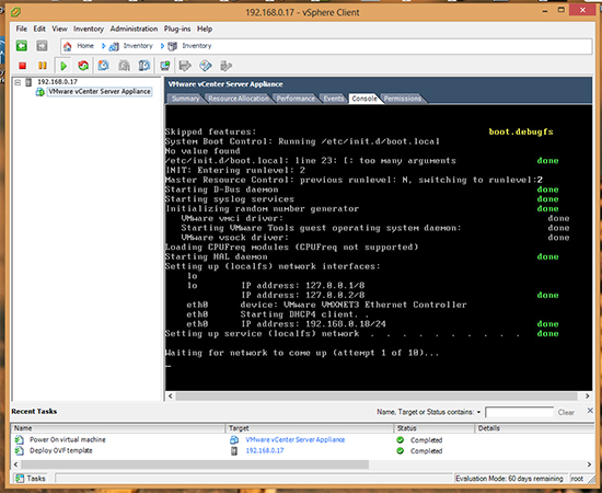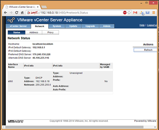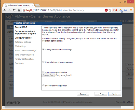 vCenter Server Appliance DHCP ‘den 192.168.0.18 IP adresini aldığını görüyoruz. IP adresini static olarak kullanmak istiyorsanız linkteki daha önce yazdığım yazıyı okumanız gerekli.
