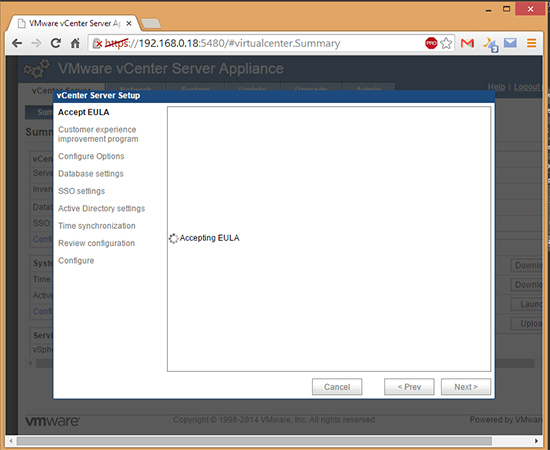 Sanal Makinanın Kurulumu tamamlandı . vCenter Server Appliance web uygulamasını açıp konfigürasyon’ un tamamen tamamlanmasını sağlamamız gerekmektedir.