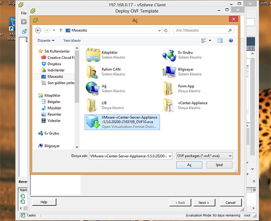 İndirmiş olduğunuz vCenter Server Appliance ova dosyasını seçiyoruz.
