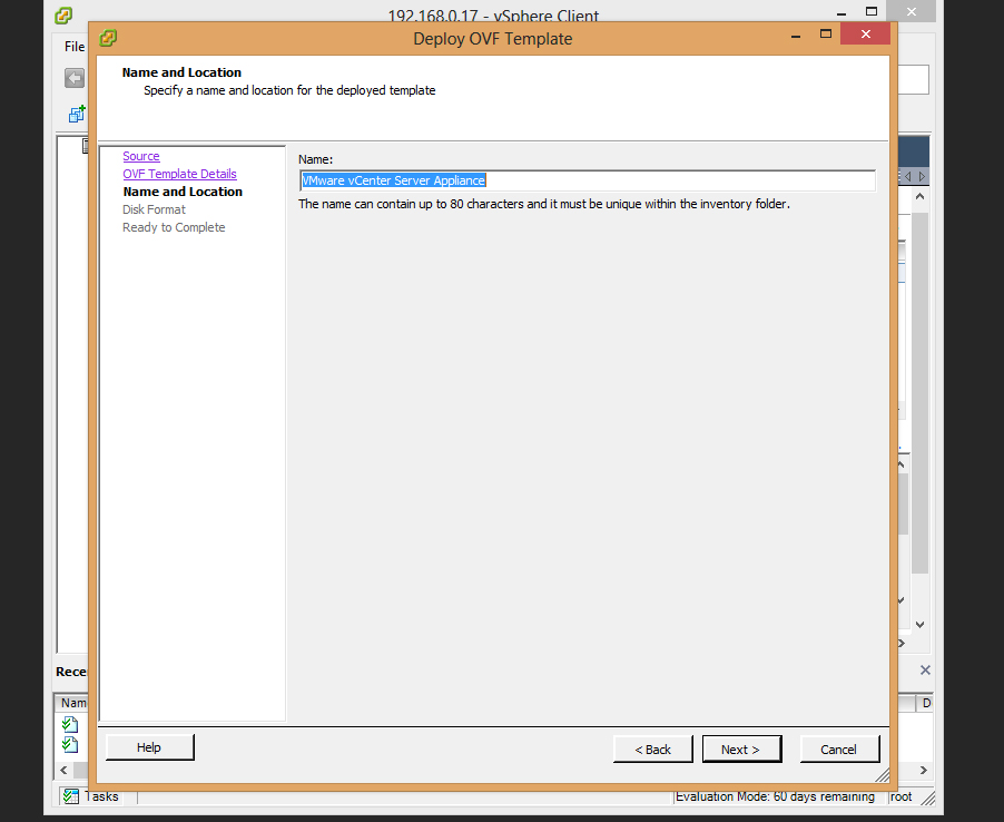 vSphere Client’ ta görüntülenecek Sanal Makine Adını Yazıyoruz.